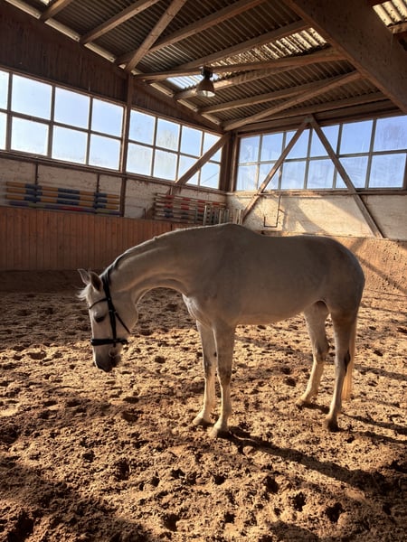 Schweren Herzens muss ich mich von meiner Stute Rosalie trennen, da ich ihr aufgrund meines Studiums und meiner aktuellen Lebensumstände zeitlich leider nicht mehr gerecht werden kann. Rosalie ist 9 Jahre alt und wird dieses Jahr 10 (geb. Sommer 2016). Ich habe sie seit ihrem 2,5-jährigen Alter und sie mit professioneller Unterstützung selbst angeritten. Von Anfang an war sie stets lieb, unkompliziert und einfach ein ganz besonderes Pferd für mich. Charakterlich ist sie eine typische Stute mit eigenem Kopf und kann gelegentlich etwas zickig sein – das beschränkt sich jedoch auf Ohrenanlegen. Sie hat noch nie getreten oder gebissen. Sie überzeugt durch ihre sehr gute Rittigkeit, eine feine Anlehnung und ein angenehmes Reitgefühl, das sofort Vertrauen vermittelt. Aufgrund ihrer hohen Rittigkeit bereitet sie viel Freude beim Reiten dennoch wurde sie von mir die letzte Zeit eher Freizeitmäßig geritten. Auch im Gelände ist auf Rosalie absolut Verlass; alleine ausreiten ist für sie überhaupt kein Problem. Dort ist sie komplett unerschrocken. Auch Dinge wie Anhänger fahren sind kein Problem. Für Videos (reiten/ frei laufen) gerne melden. Sie verfügt über eine sehr gute Abstammung, ausdrucksstarke Gänge und bringt besonders im Dressurbereich viel Potenzial mit. Ich wünsche mir für Rosalie ein liebevolles Zuhause, in dem sie im Mittelpunkt steht und idealerweise viel Zeit draußen verbringen kann Rosalie stammt in erster Linie aus einer erfolgreichsten Stämme, dem besten Oldenburger Edoste-Stamm. Der Edoste-Stamm (Oldenburger Stamm 46) ist eine hochrenommierte, leistungsstarke Oldenburger Stutenfamilie, bekannt für zahlreiche gekörte Hengste, Bundeschampions und internationale Sportpferde. Die Familie brachte Top-Pferde wie Exupery, Landjuwel Gold, Petit Prince und Designer hervor, ebenso Vererber wie Serano Gold, Best of Gold, Rosengold und Diamo Gold.