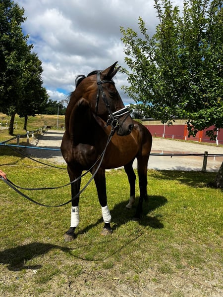 9 jährige Desperdo Stute hatte bereits 2 Fohlen bekommen. Sie ist jetzt wieder 2 Jahre unter dem Reiter und macht jeden Tag einen tollen Job.