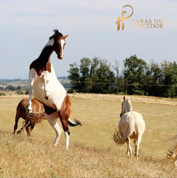 ▪︎ Par Tolegro (Tolitlas) & Vega des Comtesses (SF) Oldenburg broodmare, Bai Tobiano, born in 2015. Currently pregnant by our stallion Silver, Perfect Silver Legend by Maximus HP x Unicornio Do Retiro, due in 2026. She will be available for foal pick-up in 2026. ▪︎ Tropicale is backed and has been ridden for one year. We then decided to breed her. She is a frank and willing mare, very gentle and respectful towards humans. Tropicale is calm at the lunge and knows her job well. She responds equally well to AI and embryo transfer procedures. She is a fertile, easy-to-manage, classic mare. We are looking for a new home for her as a broodmare, ideally in a herd environment.