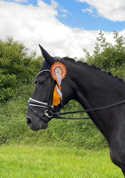 Wolke wurde auf Grund ihrer expressiven Grundgangarten sorgsam und langsam ausgebildet und ist nun bereit für neue Aufgaben im Dressurviereck. Sie ist in allen Belangen des täglichen Umgangs eine super brave und zuverlässige Partnerin. In der Arbeit ist sie nie stutig und lässt sich reiterlich einerseits „anfassen“, andererseits bewegt sie sich entspannt und stets zuverlässig und sicher in jeder fremden Umgebung, wie auch im Gelände. Sie läßt sich problemlos sowohl auf Trense als auch auf Kandare reiten. Aus diesen Gründen ist sie besonders geeignet für eine junge Reiterin, eine Dame oder für den Parasport. Sie hat L-Dressur gewonnen, ist M** hoch platziert, aktueller Ausbildungsstand ist S**- Dressur mit spektakulärer Trabtour und sehr guter/n Galopptour und (Serien-)Wechseln. Sie wird von einer Grand Prix erfolgreichen Reiterin weiter ausgebildet. Text-/Sprachnachrichten bitte ausschließlich auf Tel. Nr. 0171…. Wir beraten Sie bei einem Besuch mit Probereiten sachkompetent und nehmen uns Zeit für Sie.