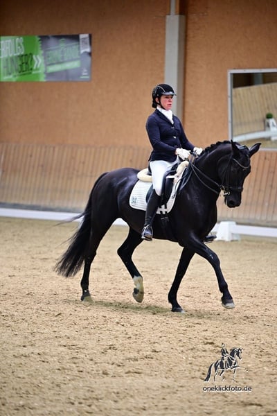 Wolke is a super well-behaved and reliable, adult mare in all aspects of daily interaction. Due to her expressive basic gaits, she was carefully and slowly trained in the breeder's stable and is now ready for new tasks in the dressage arena. At work, she is never stubborn and can be "touched" on the one hand, and on the other hand, she can ride relaxed in any foreign environment, as well as off-road. The current level of training is L-dressage; Change no problem. For more information, please contact us in person.