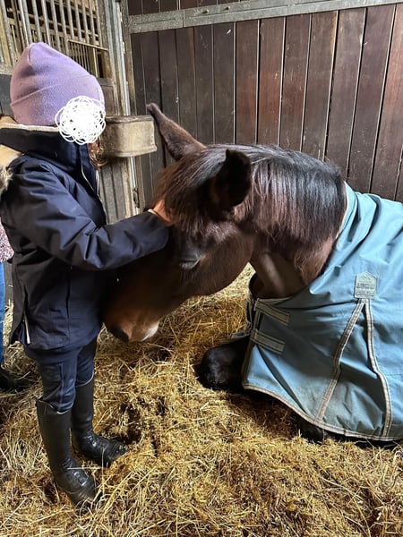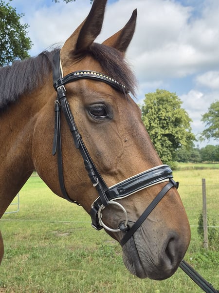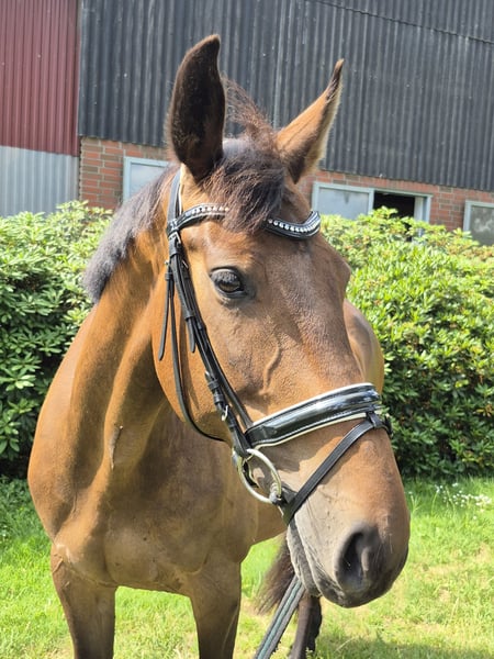Skadi rose ist eine absolut brave & menschenbezogene, schmusige 11-jährige Oldenburger Stute. Ich habe sie 8-jährig gekauft & in den drei Jahren hat Sie niemals Unarten gezeigt, ist artig in der Halle, zuverlässig im Gelände und auf fremden Turnierplätzen so gelassen, als wäre sie dort zu Hause. Sie will immer gefallen, ist fleißig, leicht in der Hand & bequem zu sitzen. Skadi hat einige A-Dressuren gewonnen/platziert und ich reite Schwerpunkt Dressur. Leider ist sie nicht immer konstant in Takt & Anlehnung, schließlich haben wir herausgefunden, dass die Ursache ein leichter Befund in der HWS ist. Man kann es behandeln, ist aber für mich keine Dauerlösung, daher passt es für mich leider nicht mehr. Ich wünsche mir für dieses liebenswerte, brave Pferd einen Platz, wo der Schwerpunkt auf Freizeit & Gelände liegt und man ihren verlässlichen, gutmütigen Charakter zu schätzen weiss. Sie macht auch gerne einen kleinen Sprung, ist schmiede- & verladefromm. Sie wurde immer im Offenstall gehalten , idealerweise hat sie auch zukünftig Auslauf & Gesellschaft. Kontaktanfragen ab 20:00 Uhr, eine vorherige Kontaktaufnahme ist aus beruflichen Gründen schwierig. Telefon: 0151 57438360