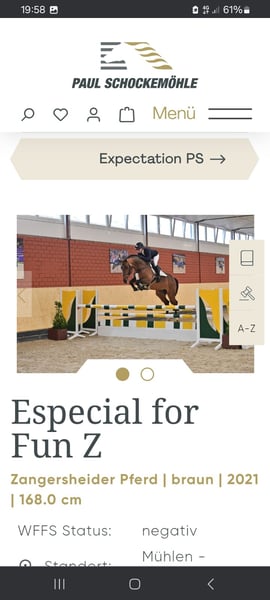 A true rarity in show jumping horse breeding is available directly from the breeder. The mare has been used exclusively for breeding. Pregnant by the stallion Especial for Fun. Last insemination date: 15/05/2025. No information can be provided regarding her suitability as a riding horse.