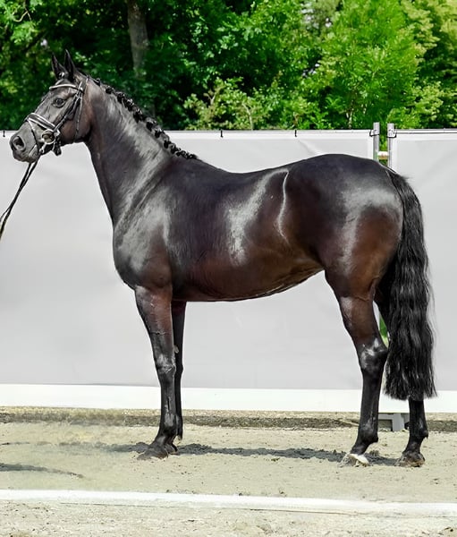 Wspaniała córka głównego zwycięzcy premiowego Oldenburga "FÜRST ROMANCIER" (Fürst Heinrich x Romancier). Zarejestrowana w Oldenburgu i Westfalii Fürst Romancier x San Amour x Royal Hit Old., urodzona w 2013 roku, wzrost 1,63 m Klacz została osiodłana w wieku trzech lat i od 2017 roku, ze względu na swoje dobre pochodzenie, jest wykorzystywana w hodowli. Jest zarejestrowana jako klacz hodowlana z oceną 8,0 i już urodziła sześć źrebiąt, w tym jedno źrebię aukcyjne. Na 04/2026 klacz jest w ciąży z ENTERTAINER NUMBER ONE (Escamillo x Vitalis x Likoto xx) z stacji ogierów Beckmann. Entertainer Number One zachwyca harmonią ciała i posiada doskonałe podstawowe chody. Jego temperament, z dużym wewnętrznym spokojem, oraz pierwszorzędny charakter są wręcz wzorcowe. Sportowo odnosi już liczne zwycięstwa w konkursach dla młodych koni. To doskonała oferta z doskonałą genetyką i jakością do hodowli! Klacz jest ślepa na lewe oko, co jednak nie wpływa na jej funkcjonowanie. W 2020 roku miała zapalenie oka, ale od tego czasu nie miała żadnych problemów, więc oko nie musiało być usuwane. Aktualnie ma źrebię przy sobie i mogłaby się wyprowadzić w październiku. W przypadku poważnego zainteresowania, chętnie udzielę dalszych informacji telefonicznie! Nr tel.: 015755033125