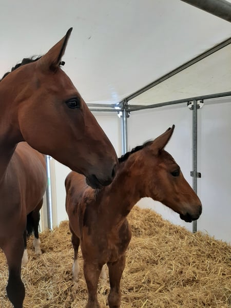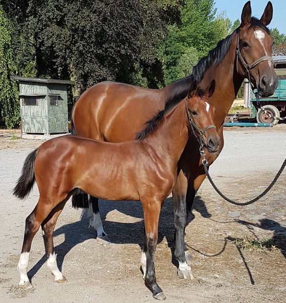 12-year-old mare Royal Dream x Don Primero, in foal to Feinschmecker for June 2026 (sale includes the foal for 2026, of course!) Height approximately 1.78m The mare takes on foals easily, has produced very good offspring so far, and can be described as a beginner breeding mare. Overview of some offspring: Last year, participant in the foal championship in Wickrath, where the filly received scores of 2x 8.5 and 1x 9.0 in trot. A Vaderland offspring was prepared for the licensing, highlighting the quality of her progeny. 7-year-old mare by Benicio (Benita 59) has been very successful this year under an amateur at competitions up to L**, trained up to S level and rideable by anyone. She is now being successfully presented by a junior rider in her first L dressage tests. Incredibly good character. Not mareish or moody. Very affectionate, strong nerves, and fearless, traits she passes on to her offspring. She has never been sick with us. The mare has had foals continuously since she was 4 years old and has not been ridden.