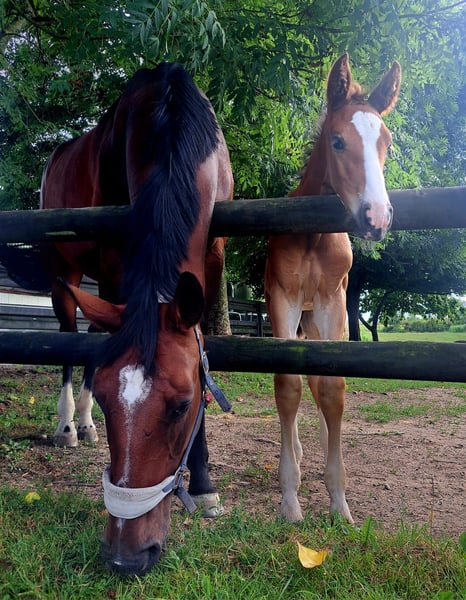12jährige Stute Royal Dream x Don Primero, tragend mit Feinschmecker für 06.2026 (Verkauf selbstverständlich inklusive Fohlen für 2026!) Stockmaß ca. 1,78m Die Stute nimmt problemlos auf, hat bisher sehr gute Fohlen gebracht und ist als Anfänger-Zuchtstute zu bezeichnen. Übersicht über einige Nachkommen: Letztes Jahr Teilnehmerin am Fohlenchampionat in Wickrath, bei dem das Stutfohlen im Trab 2x 8,5 und 1x 9,0 bekam. Ein Vaderland-Nachkomme wurde zur Körung vorbereitet, was die Qualität ihrer Nachkommen unterstreicht 7jährige Stute von Benicio (Benita 59) aus der Stute dieses Jahr sehr erfolgreich unter einer Amateurin auf Turnier bis L** unterwegs, im Training bereits bis S ausgebildet und von jedem nachzureiten. Wird mittlerweile von einer Juniorin erfolgreich in deren ersten L-Dressuren vorgestellt. Charakterlich unglaublich. Nicht stutig oder zickig. Sehr verschmust, nervenstark und unerschrocken, was sie an ihre Nachkommen weitergibt. Sie war bei uns noch nie krank. Die Stute hatte seit 4jährig durchgängig Fohlen und wurde nicht geritten.