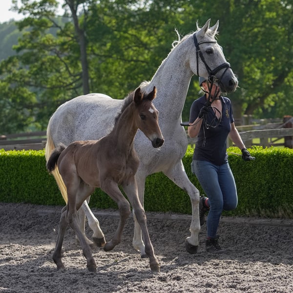 Sensation hat ihren Namen immer gerechtfertigt als eine atemberaubende Stute und hervorragende Bewegerin, abstammend von einer besonderen GP-Stute. Sie hat einige außergewöhnliche Fohlen hervorgebracht, darunter den großartigen Escanto-Hengstfohlen, den sie bei Fuß hat und den wir behalten werden. Daher ist sie nach dem Absetzen verfügbar, kann aber in der Zwischenzeit von Ihrem gewählten Hengst gedeckt werden, wobei die Kosten für Tierarzt und Samen vom Käufer getragen werden müssen. Sensation ist ein freundlicher, aber sensibler Typ in ihrem Charakter, weshalb sie sich nicht für einen großen, geschäftigen Stall oder grobe Handhabung eignet. Sie ist am besten geeignet für einen wissenden und freundlichen kleineren Stall als unseren großen, geschäftigen Stall. Im täglichen Umgang ist sie sehr einfach und völlig unkompliziert in der Herde sowie bei der Geburt und ist eine großartige Mutter. Sie leidet jedoch unter Sommerekzem und hat eine empfindliche Haut, weshalb sie in den Sommermonaten eine entsprechende Pflege benötigt, um Reizungen zu vermeiden, was am besten in einem kleineren Stall möglich ist, als wir es derzeit sind, um ihren Bedürfnissen gerecht zu werden. Im Gegenzug wird sie einige atemberaubende Nachkommen produzieren (keiner von ihnen hat von mehreren verschiedenen Hengsten Juckreiz geerbt).