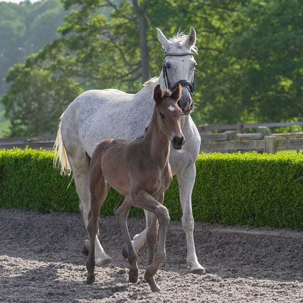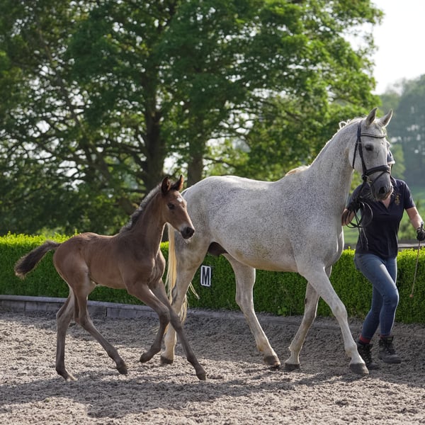 Sensation has always lived up to her name as a stunning model of a mare and superb mover, descending from a special GP mare. She has produced some exceptional foals including the super Escanto colt she has at foot which we will be retaining, so available on weaning but in the meantime can be covered by your choice of stallion, at the buyers expense for the vet & semen costs. Sensation is a kind but sensitive type in her character so wouldn't suit a big busy yard or any rough handling, she is best suited to a knowledgeable and kind smaller stable than our big busy yard. Very easy in day to day handling and totally uncomplicated in a herd and with her foaling, and is a great mum. She does however suffer from sweet itch & is sensitive in her skin, so needs management for this to not become irritated in the summer which would be best suited to a smaller yard than we currently are to do this best for her need. In exchange she will produce some stunning offspring (none of whom have inherited any itching from multiple different sires).