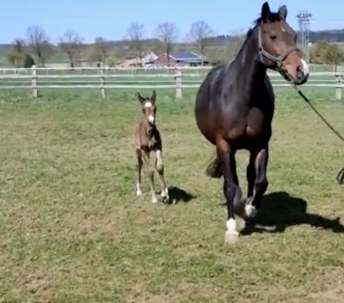Przepiękna, urocza klacz hodowlana, w ciąży od końca czerwca z Diathago, do końca listopada będzie miała jeszcze źrebę przy sobie. Ze względu na wypadek w 2022 roku została włączona do hodowli, wcześniej jeździła rekreacyjnie. W razie pytań proszę dzwonić od godziny 16:00.