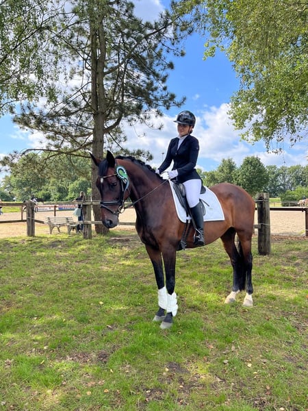 With a heavy heart, we are selling our 13-year-old Oldenburg mare. Coco stands at 16.1 hh, is a true all-rounder, and is suitable for any kind of fun. We are looking for an ideal new home where she will be appreciated and treated as a full family member. Our wish is for her to find a home where she can bring joy to an ambitious leisure rider or serve as a schoolmaster—possibly with occasional competition ambitions. Show jumping is Coco’s passion, although in recent years, due to lack of interest, she has only been competed at E-A level. Thanks to her love of jumping and her temperament, we can see her as a wonderful teacher and schoolmaster. In dressage, Coco has recently placed in A* level tests with excellent scores up to 7.4. Her training has included various lateral movements and flying changes, integrated playfully into her routines. This year, Coco also excelled in a guided calmness test, placing first. She enjoys hacking (currently only in pairs, as we are working on solo outings), groundwork, some cross-country jumps, water crossings, and lunging exercises. Since we have had her, Coco has been trained to accept the walk on a shortened and extended rein, which does not negatively affect her and can be ridden out well with good rider support. Her walk has never been rated as irregular in dressage tests. She also has mild osteoarthritis in the cervical spine, which was treated with injections last year and does not limit her further. We are looking for a loving, experienced, and consistent rider for Coco. She is an absolute sweetheart in handling and has especially this year shown her best and most confident side in competitions. In the cross-country, she might sometimes need a firm hand if she wants to head home early. Coco is regularly dewormed, vaccinated for competition (+West Nile Virus), has two shoes, and loads reliably. Currently, she stays in a box at night and is on a mare’s pasture during the day. Previously, she spent the summer on a 24-hour pasture in a mixed herd, where she integrated very well. She is very easy-going and sociable. All in all, Coco is a wonderful mare who has proven herself under strong riders but also has taught many less experienced riders with her honesty. She could also be used for breeding or as a companion horse due to her friendly nature. We are selling her with a heavy heart, as our circumstances have changed with her early twenties. Absolutely priority is place over price!