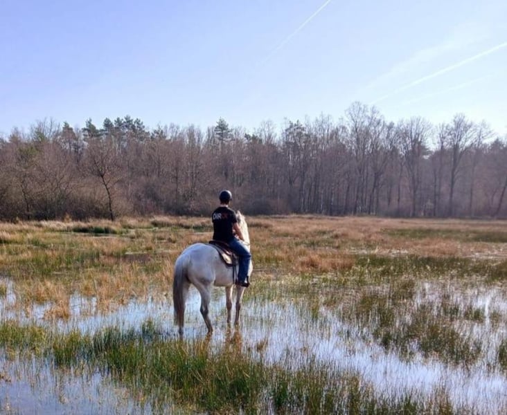 Mare Zucci, 14 years old, 16.1 hh Galliani Biolley x QuickSilver x Thorwald Zucci is a mare with a particularly interesting pedigree combining dressage and show jumping lines. Sire: Galliani Biolley – a proven dressage stallion with strength, suppleness, and a beautiful conformation. Dam’s sire: QuickSilver – Grand Prix show jumping stallion known for power, caution, and a good attitude. Properties of Zucci: ✔ Well-behaved on outdoor rides ✔ Correct in all three gaits ✔ Calm at the farrier ✔ Light-footed, supple, and eager to work ✔ Suitable for sport, recreational riding, and breeding A lovely mare with a beautiful blend of movement, temperament, and bloodlines — ideal for those seeking quality and character. No stable vices or allergies.