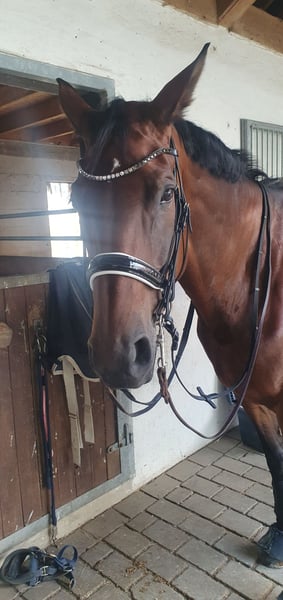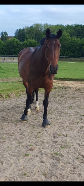 Beschreibung Zum Verkauf steht eine sehr typvolle und sympathische Oldenburger Stute, die durch ihre hervorragende Abstammung und ihr angenehmes Wesen besticht. Sie ist brav im Umgang, stets verlade- und schmiedefromm und wurde regelmäßig geimpft und entwurmt. Sportlich kann sie A**-Dressur siegreich vorweisen und ist in L platziert. Sie zeigt sich motiviert in Bodenarbeit, geht gern ins Gelände und eignet sich auch für gelegentliches Springen. Aktuell steht sie im Offenstall in Pause, da der klassische Dressuralltag sie auf Dauer nicht glücklich macht. In alternativer Nutzung – z. B. Zucht, Beistellpferd, Geländepferd oder vielseitige Freizeitbeschäftigung – blüht sie dagegen auf. ⸻ Eignung ✔ Zuchtstute ✔ Freizeit / Gelände ✔ Bodenarbeit ✔ Beisteller ✔ Gelegentliches Springen ❌ Nicht geeignet für Kinder oder Anfänger ⸻ Gesundheit • regelmäßig geimpft & entwurmt • insgesamt guter, gepflegter Zustand ⸻ Besonderheiten Platz vor Preis! Die Stute wird nur in beste, erfahrene Hände abgegeben. Weitere Informationen gerne telefonisch oder persönlich.