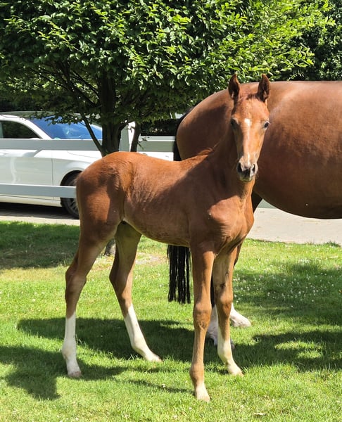 ! Gelgenheit ! Hier haben Sie die Möglichkeit eine großrahmige Zuchtstute von Fürst Romancier x Sir Donnerhall I tragend für den 07.04.2026 von Escaneno zu erwerben. Aufs familiären Gründen steht die Stute zum Verkauf. Lassen Sie sich diese Gelegenheit nicht entgehen. Ihr Hengstfohlen von Escaneno von 2025 kann ebenfalls vor Ort besichtigt werden. Preislich stellen wir uns 3.500 vhb vor bei schneller und unkompliziert Abwicklung. Besichtigung nach Terminabsprache am Wochenende möglich. Es stehen noch 2 weitere Zuchtstuten zum Verkauf. - Stute von De Niro x Lauries Crusador tragend von Escanto PS OLD 08.05.2026 (8.500 vhb) - Stute von Bordeaux x Soliman de Hus tragend von Ventjo 24.05.2026 (7.500 vhb) Die Stuten können auch im Paket erworben werden.
