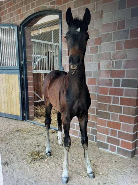 Waldelfe to duża i stabilna klacz po legendarnym Don Schufro. W wieku 3 lat zdała swój test ujeżdżeniowy (SLP) i otrzymała odznaczenie z wyróżnieniem od związku. Wywodzi się z renomowanego oldenburskiego ogierstwa matczynych linii Waldhexe. Jej matka, Waldblume, była prestiżową klaczą Rasteder Brilliantring. Waldelfe od 4 roku życia jest wykorzystywana w hodowli i dostarczyła nam bardzo dobre konie sportowe. Na zdjęciach widać potomstwo od Grey Flanell, Feinrich i Franziskus. W naszej hodowli znajduje się jeszcze córka Totilasa. Przekazuje spokojny i uczciwy charakter, doskonały chód oraz naturalną rittigkeit. Elfe jest bardzo towarzyska w stadzie i świetną matką. Obecnie jest w ciąży z Grey Tonic, spodziewa się potomka w czerwcu 2026 roku. Zależy nam na przyjaznym i pełnym szacunku domu dla tej klaczy. Więcej informacji chętnie udzielę pod numerem 01749049299. www.hof-voss.de