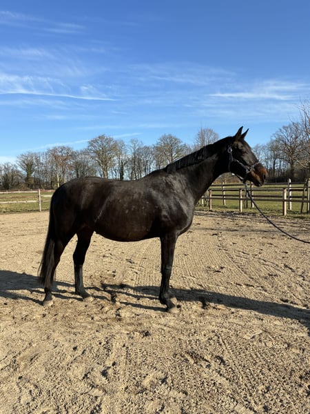 Waldelfe is a large-framed and solid mare by the legendary Don Schufro. She completed her 3-year-old performance test (SLP) with distinction and was awarded the Verband prize. She descends from the well-known Oldenburg mare line of Waldhexe. Her dam, Waldblume, was a Rasteder Brilliantring mare. Waldelfe has been used in breeding since she was 4 years old and has produced very good riding horses for us. The photos show offspring by Grey Flanell, Feinrich, and Franziskus. One of her daughters by Totilas is still part of our breeding program. She passes on a very calm and honest character, an excellent walk, and natural rideability. Elfe is very herd-friendly and a good mother. She is pregnant with Grey Tonic for June 2026. We are looking for a kind and appreciative home. More information gladly at 01749049299 www.hof-voss.de