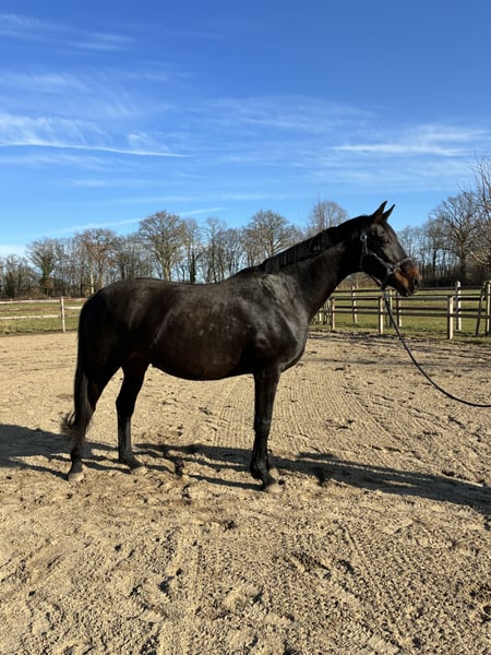 Waldelfe, une jument de grande taille et robuste, issue du légendaire Don Schufro. Elle a passé son examen SLP à l’âge de 3 ans et a été distinguée par la prime de l’association. Elle provient de la célèbre lignée de juments Oldenburger, celle de Waldhexe. Sa mère, Waldblume, était une jument de renom de Rasteder, lauréate du Brilliantring. Depuis ses 4 ans, Waldelfe est utilisée en reproduction et nous a fourni d’excellents chevaux de selle. Sur les photos, on peut voir des descendants de Grey Flanell, Feinrich et Franziskus. Une fille de Totilas fait également partie de notre élevage. Elle transmet un caractère très calme et sincère, un trot excellent et une grande facilité de selle. Elfe est très sociable au sein du troupeau et une mère attentive. Elle est pleine de Grey Tonic pour juin 2026. Nous souhaitons lui trouver un foyer chaleureux et respectueux. Plus d’informations au 01749049299 www.hof-voss.de