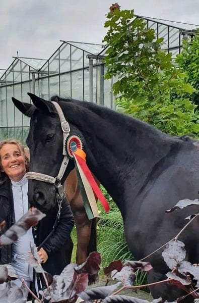 Beautiful black Oldenburg mare, S**-rated and in competition condition. Easy to ride, well-behaved in handling, and full of energy. Also reliable and relaxed in the terrain. She is ready for immediate use in the Children’s class but is equally suitable for an ambitious beginner eager to learn, a girl transitioning from ponies to full-sized horses, or anyone looking for a straightforward ride. She reliably performs flying changes in 2-, 3-, and 4-series and has a very comfortable seat. The mare is only available to a good home and is sold including all accessories.