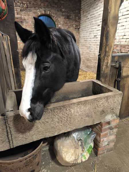 Schicke, liebenswerte 15jäh. Rappstute von Sandro Hit x Akzent / Cardinal xx. Wurde 4jäh. angeritten, ging dann in die Zucht und wurde im Winter 24/25 wieder angeschoben und geritten. Im Frühjahr 25 von uns übernommen ist es nicht gelungen, sie mit unserem Wallach zusammenzubringen, er akzeptiert sie einfach nicht. Da die Stute daher sehr unglücklich ist, sucht sie ein schönes neues zu Hause als Freizeitpferd oder für die Zucht. Sie ist ein Familienpferd mit sehr ausgegelichenem Charakter, anfänglich etwas skeptisch, taut aber schnell auf wenn man sich mit ihr beschäftigt und sie wird gerne betüddelt. Den letzten Sommer nicht mehr gearbeitet, muss sie wieder angeschoben werden. Unsere Pferde kennen eine Box nur nachts im Winter. Die Stute ist gesund und ohne Unarten. STM ca. 164cm.