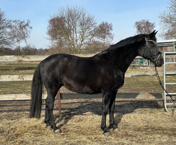 Swarovski x Dunhill x Worldman Stute / Geb. 2008 / Rappe / 168cm Geritten bis A Dressur danach zur Zucht eingesetzt. In den letzten Jahren drei gesunde Stutfohlen von Morricone, Democracy und Dream Royal zur Welt gebracht. Fohlen aus dieser Stute sind sehr schick und haben gute Bewegungen. Nimmt gut auf und ist unkompliziert im abfohlen. Liebevoll geht sie mit ihren Fohlen um. Liebt die Herdenhaltung. Die Stute ist gesund und hat keine Unarten. Sie wird als Zuchtstute verkauft. Verkauf wegen Bestandsverkleinerung. Bitte per WhatsApp unter 01779736387 melden.