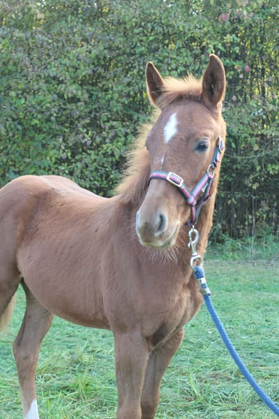 Zum Verkauf steht ein Oldenburger-Mix Stutfohlen, geboren am 03.05.2025. Mutter: Oldenburger Vater: Quarter Horse Diese junge Stute besticht durch ihre liebevolle Art und ihr potenzial für die Zukunft. Sie ist gesund, freundlich im Umgang und zeigt bereits erste vielversprechende Bewegungen. Sie kennt das Fohlen- ABC und freut sich über die weitere Ausbildung. Momentan hat sie noch keinen festen Namen in ihren Equidenpass eingetragen, für kurzentschlossene kann dieser noch eingetragen werden. Bei Interesse oder für weitere Informationen stehe ich gerne zur Verfügung. Vereinbaren Sie gerne einen Termin, um diese junge Stute persönlich kennenzulernen!