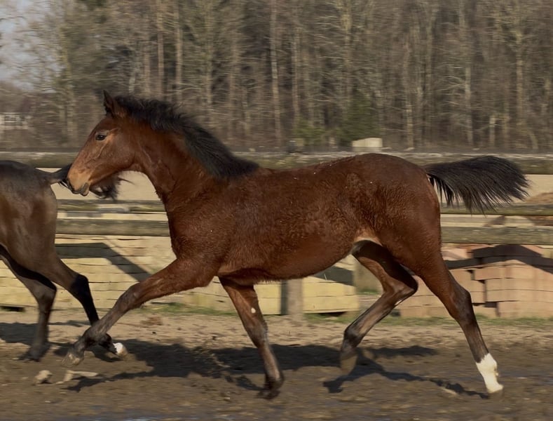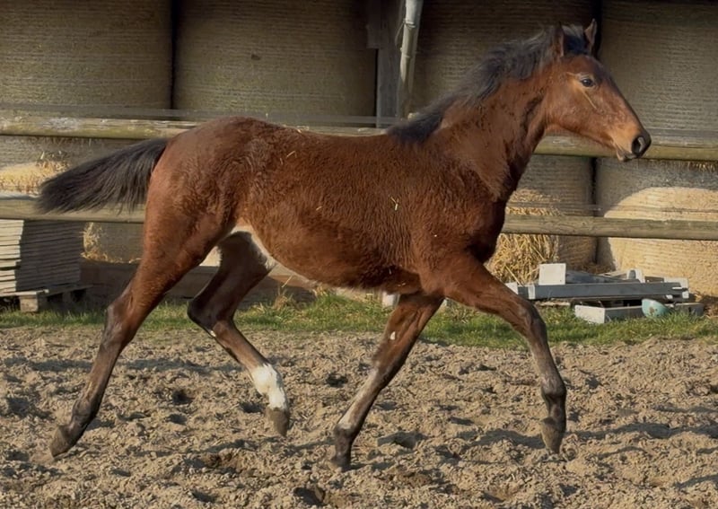 Promising foal-born mare from a successful pairing! Full brother licensed and performance tested with scores up to 9.0 for rideability and willingness to perform. This mare will also be clearly double-anchored in her pedigree and suitable for both amateurs and professionals. Her sire, Cafe au Lait, a stallion champion at his licensing, winner of the performance test, and finalist at the Bundeschampionate, was successful in advanced classes himself and has established a reputation in recent years as a top sire with outstanding progeny. Thus, Cafe's Casimir (Cafe au Lait x Calido x Grannus), celebrated as the top-priced lot at the Oldenburg Elite Auction, has already achieved multiple wins in S-dressage and international success in Intermediaire I at a young age. Kasselmann's Cafe's Caletta (Cafe au Lait x Calato) is also placed in S-Dressage and victorious at international Grand Prix level. Cafe's Matts (Cafe au Lait x Don Frederico) was the second-highest priced dressage horse at the Oldenburg Summer Mixed Sales. Additional young horses from spring-bred dam lines have been repeatedly placed in dressage competitions from A to M class and are notably expressive in movement and mentally sharp. There is no doubt that Cafe au Lait offspring excel in show jumping up to the advanced level, as exemplified by our own breeding: - Cafe's Champus: licensed, vice-world champion of young horses - Cafe Junior: licensed, successful internationally in Saudi Arabia - Cafe's Columbo: licensed and successful in sport in France - Cafe's Don Rubin: licensed, bronze medalist at the Dobrocker Deister Championship at age 4 as the youngest horse, now 5 years old and multiple winner in jumping classes L and M, qualified for the Bundeschampionate - Cafe's Deconi: licensed, just 3 years old and completed a 50-day performance test with scores up to 9.0! Stationed with Paul Schockemöhle, Cafe au Lait has already sired numerous internationally successful show jumpers, including "Royce," victorious at the FEI CSI5* $500,000 Rolex Grand Prix Wellington. Cafe au Lait himself was a Bundeschampionat finalist under Philipp Weishaupt and has competed successfully up to S*** jumping, while also possessing three above-average GGA and dressage training at S level. Our foals receive daily mineral feed and foal starter, regular EQUISTRO Haemolytan and Ipaligo Foal supplements. Deworming and farrier visits are, of course, standard. The dam lines are also fed special broodmare feed, daily forage and linseed oil throughout pregnancy, plus hay ad libitum. As a result, our offspring are always in excellent health. Further foals and young horses from our own breeding are available upon request. We also regularly have some pregnant broodmares for sale. Video inquiries, etc., exclusively via WhatsApp in advance!