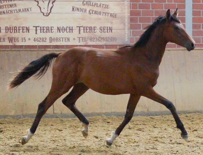 Rasse: Oldenburger Abstammung: Damian VBL x Santo Domingo von San Amour Geschlecht: Stute Alter: geb. 20.03.2024 Zum Verkauf steht diese vielversprechende Dressur Nachwuchs Stute Sie ist mit drei schwungvollen, elastischen GGA ausgestattet , ist brav im Umgang und beherrscht das Fohlen ABC Alles weitere unter der Nummer 0176 6249557