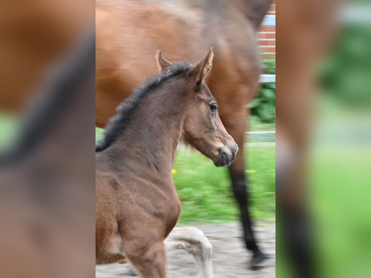 Pouliche puissante avec de très bonnes GGA malgré une ascendance de saut. Lieu Emstek ! Informations sur la lignée maternelle : Oldenburger Stamm 189 mère classée en S et jument élite OS. Grand-mère jument élite OL. Frères et sœurs de la mère couronnés de succès jusqu'en GP et S internationaux.