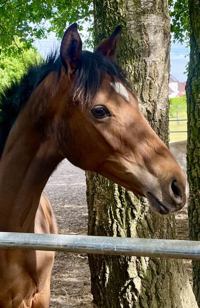 A daughter of Bon Esprit who leaves nothing to be desired. Good, expansive gaits, an active hind leg, and a character of gold! A wonderful yearling filly from a small, loving hobby breeding. She is very eager to learn and is an absolute treasure to handle. The mother is a performance mare according to FN standards and was herself successful up to M** level.