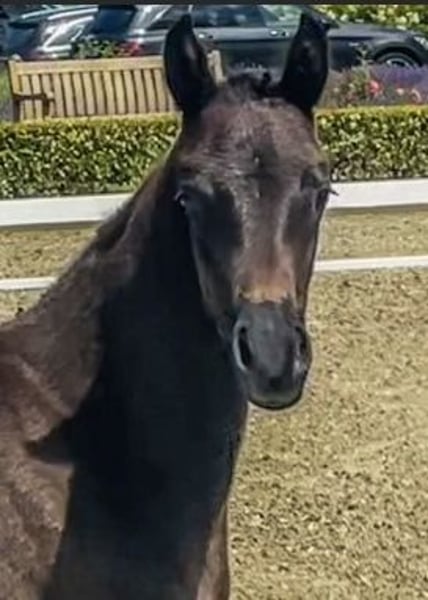 Royal Esprit ist bezauberndes, bildschönes, sehr liebes und anhängliches schwarzen Prämien Stutfohlen von Bon Esprit/ Dancier/ Totilas/ Rohdiamant/ Pikbube. Sie hat drei sehr gute Grundgangarten. Sportlich und züchterisch hochinteressant!! Alles was im Dressursport Rang und Namen hatte und heute hat steht in ihrem Pedigree. Mütterlicherseits kommt sie aus dem Rotsponstamm der Noreja. Seit jeher ein Garant für Rittigkeit. Ihre Grossmutter ist die Schwester der Mutter vom helgstrandschen Superhengst So Perfect. Alle Erfolgspferde dieses Stammes aufzuzählen würde den Rahmen sprengen. Vater, Siegerhengst Bon Esprit (Bon Courage/Sezuan) ist einfach eine Klasse für sich mit herausragenden Perspektiven. Royal Esprit kann zur Aufzucht bei uns bleiben. Bei Interesse gern mehr Informationen und Video per whats App und mündlich. 0175 1567093.