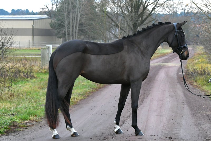 Quelle adorable pouliche ! Cette jument de près de 4 ans, issue de Vaderland, a été doucement monté à la fin de l'été et est actuellement travaillé en liberté trois fois par semaine en manège et en extérieur. Elle est très volontaire et dotée d’un bon tempérament, avec beaucoup de punch, mais reste toujours douce et facile à manipuler. Dotée de bonnes allures de base, elle pourra débuter en concours de jeunes chevaux l’année prochaine – une excellente monture pour un cavalier plus petit ou un bon cheval de transition ! Un contrôle radiographique récent de cette année est bien sûr disponible. À voir et à tomber amoureux ! Habituée au paddock et au pré quotidien.