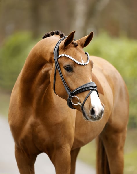 Piękna, elegancka klacz do ujeżdżenia w mniejszym rozmiarze, która mimo to doskonale pokrywa. Delikatna i mało eksploatowana, już na odpowiednim dla jej wieku poziomie nadaje się do jazdy, jest dobrze i równomiernie wyważona. W obejściu i charakterze prawdziwy skarb z czymś wyjątkowym, która podoba się i zdobywa sympatię oraz serca błyskawicznie. Bardzo interesująca oferta w świetnej cenie. Badanie techniczne w porządku.