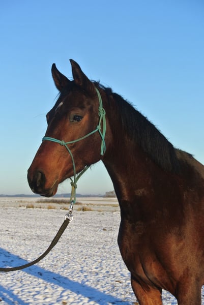 Geboren in maart 2022, is deze bruine Oldenburger merrie, afstammend van Vivaldos x Belissimo M x Dimaggio. Ze is momenteel ongeveer 1,63 m groot en groeit nog, vooral achteraan duidelijk hoger. Ze is zeer vriendelijk in de omgang en laat zich probleemloos aanlijnen, poetsen, voorstellen aan de hoefsmid, ontwormen, enzovoort – alles wat je als paard moet kunnen. De merrie is longeerbaar en kent zadel en hoofdstel, maar is nog niet bereden. Deze jonge dame zoekt iemand die een band met haar opbouwt en veel work vanuit de grond wil doen. Ze reageert hierbij heel fijn op de kleinste hulpjes. Als ze iemand niet vertrouwt, is ze eerder terughoudend en sceptisch, maar ze zou nooit agressief worden tegenover een mens. Alleen voor professionals en ervaren paardenliefhebbers. Röntgenfoto’s met een lichte afwijking zijn aanwezig. Bij serieuze interesse kunnen deze, indien gewenst, getoond worden aan de eigen dierenarts voor beoordeling. Wil je meer informatie? Neem gerust contact op. Ik verzoek je vriendelijk om geen berichten uit puur nieuwsgierigheid te sturen, maar alleen bij serieuze interesse.