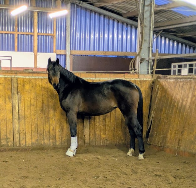 Wymarzona klacz do ujeżdżenia od For Romance I x Fidertanz Na sprzedaż piękna klacz urodzona w 2020 roku, pochodząca od For Romance I z matki będącej potomkiem Fidertanza. Ta typowa klacz do ujeżdżenia zachwyca trzema bardzo dobrymi chody. Szczególnie wyróżniają się jej duża swoboda w obrębie łopatki, naturalny podstawowy ruch oraz wyrazista mechanika. Dopełnieniem jej ogólnego wyglądu jest pożądana ciemna maść oraz elegancki wygląd. Oprócz wysokiej jakości pod siodłem, wyróżnia się również pierwszorzędnym, łatwym charakterem. Wychowana w stadzie u hodowcy, od trzech miesięcy jeździ pod siodłem. Przy tym wykazuje dużą chęć do nauki, jest spokojna i zawsze zmotywowana do pracy. Aktualny certyfikat TÜV jest w pełni dostępny i nie wykazuje żadnych zastrzeżeń. Dodatkowo na sprzedaż dostępna jest jej peł sistera, klacz urodzona w 2023 roku. W przypadku zainteresowania prosimy o kontakt.