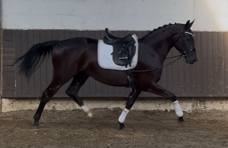 Another beautiful daughter of the Kör and HLP winner "Cafe au lait", who has been attracting attention for several years with his incredibly successful offspring in dressage and show jumping in the heavy class! Both by the father and by the breeder-proven and double-sided predisposed mother, who also has the necessary blood connection, this beautiful dark mare is recommended for dressage and show jumping, as well as eventing alike. Two full siblings have already been sold and are also extremely strong in movement and talented in jumping! A very high-quality full brother can be visited on site. Cafe au lait himself was a finalist in the National Championships under Philipp Weishaupt and has been successful up to S*** jumping, but has also been equipped with three spectacular GGA and has been trained dressage at S level. Stationed with Paul Schockemöhle, he has already fathered several internationally successful show jumpers, including "Royce", winner of the FEI CSI5* $500,000 Rolex Grand Prix Wellington. The licensed Cafe's Champus became Vice World Champion of Young Horses under Rene Tebbel. Also licensed and from our breeding: Cafe Junior (Cafe au lait x Silvio I), placed internationally S*-jumping. Other young horses from jumping dam mares have already placed several times in dressage horse tests A to M and are remarkably strong in movement and clear as head. Even in the large square, the "Cafe's" are convincing all along the line: This is how "Cafe's Casimir" (Cafe au lait x Calido x Grannus) became the celebrated top prize of the Oldenburg Elite Auction, was already a serial winner in dressage horses M at a young age, and at the age of 7 he was again a serial winner in his first S dressage! Meanwhile, he is victorious in international Intermediaire I. Mare Kasselmann's Cafe's Caletta (Cafe au lait x Calato) is also already S-dressage and has just won the international Grand Prix. Cafe's Matts (Cafe au lait x Don Frederico) became the second most expensive dressage horse of the Oldenburg Summer Mixed Sales. Our foals receive daily mineral feed and foal starters, regular EQUISTRO Haemolytan and Ipaligo Foal, worming and blacksmithing are of course also a matter of course. The mothers also receive special mare feed throughout the pregnancy, daily juice feed and linseed oil, as well as hay ad libitum. So our offspring are always in the best state of health! Other foals and young horses from our own breeding on request. Some of them can be found among the other ads. We have around 20 café au lait foals every year. There are also always some pregnant broodmares for sale. (Video) Inquiries can only be made via WhatsApp.