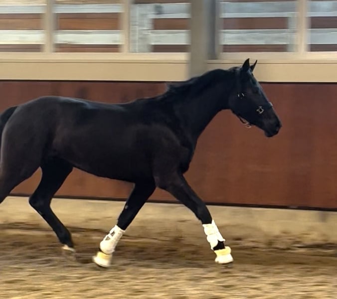 ⚜️ Sissi ⚜️ Sissi was born and raised on our farm and has recently been started under saddle. She is consistently calm, well-behaved, and eager to learn. Her basic gaits leave nothing to be desired. Particularly noteworthy is her exceptional walk, which often determines the final score in dressage tests for young horses. She is currently barefoot. Sissi has recent X-rays, including her back, with no findings, and a flawless veterinary health check. She has no vices or behavioral issues. Progeny of the stallion SECRET are more sought after than ever, as he consistently passes on rideability, a clear mind, and quality. His offspring are highly successful in young horse competitions.
