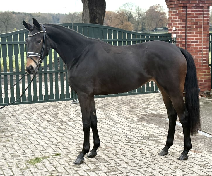 For sale is a stunning Oldenburg mare, born in 2022. This dark bay beauty impresses with her elegant appearance and promising potential as a dressage horse. Standing at 16.1 hh, she is perfect for ambitious riders seeking a reliable partner. Her excellent pedigree and balanced temperament make her an ideal companion for dressage. If interested, I am happy to provide further information and arrange a viewing.