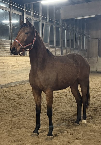 A two-year-old brown mare by Straight Horse Finest Houre x Elcolar is for sale. She possesses three very good basic gaits. Her mother, by Escolar x Diamonit, has a wonderful friendly character. She was very rideable, clear-minded, and consistently passes these qualities on to her offspring. Directly from the breeder, who also breeds his own horses. In winter, they are kept in an active stable, and during the summer, they graze on large 24-hour turnout pastures. The horses are regularly trimmed by the farrier, dewormed routinely, and mineral feed is provided as a matter of course. The breeder produces 5-10 foals each year and sells them, as he simply cannot keep them all. Feel free to arrange a viewing appointment, also via WhatsApp. Weekdays or weekends—both options are convenient! Location: Equestrian facility Uhlerborn Budenheimer Weg 41-45 55262 Heidesheim