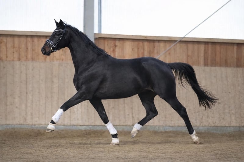 Bildschöne Rappstute - Dressurnachwuchs mit Top-Abstammung Total McLaren × Samarant × Figaro Zum Verkauf steht, direkt vom Züchter, eine 4-jährige Stute (ca. 1,70 m) in besonders ansprechender Aufmachung – ein bildschöner, lackschwarzer Rappe mit viel Ausdruck und Ausstrahlung. Die junge Stute überzeugt mit drei sehr guten Grundgangarten, viel Takt und Elastizität sowie einer natürlichen Bergauftendenz. Sie bringt beste Voraussetzungen für eine weitere Förderung im Dressursport mit. Im Umgang zeigt sie sich sehr menschenbezogen, verschmust und unkompliziert. Sie ist freundlich, aufmerksam und angenehm zu arbeiten. Ausbildungsgemäß ist sie solide anlongiert und kennt bereits Reitergewicht, zeigt sich dabei brav und lernwillig. Eine ideale Nachwuchsstute für Reiter, die sich ein talentiertes junges Pferd selbst weiter ausbilden möchten. Eine typvolle, bewegungsstarke Nachwuchsstute mit viel Potenzial für Sport und Freizeit. Für Schnellentschlossene noch zum Selbstausbilderpreis. Der Preis steigt bei weiterer Ausbildung. Ein guter TÜV liegt vor. Mehr Informationen gerne auch telefonisch unter +49 173 7359633.