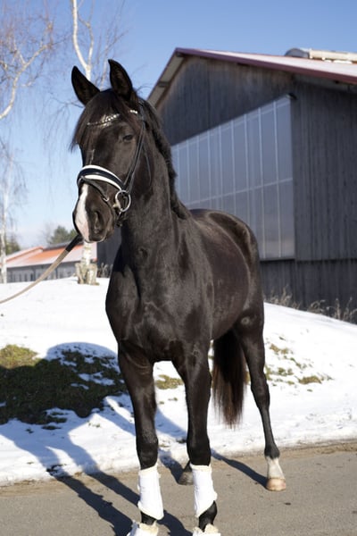 3 year old black pearl for sport as well as for breeding. In the coveted black color with beautiful markings. She has very good movements and is well behaved, not yet broken in. Slightly lunged. Approx. 170cm A jewel in the breeding program. San Amour San Amour I was second reserve winner at the Oldenburg licensing in 2006, main premium winner in 2008 and placed Bundeschampionat finalist in 2009 under Dr. Ulf Möller. He owes his twelfth place ranking among the world's best dressage sires to his numerous Grand Prix offspring. De Niro An exceptional stallion of superlatives! De Niro can boast over 100 licensed stallions in his career as a sire. His offspring are sought after worldwide and successful on all dressage arenas. If you have any further questions, please call us at 017622388605