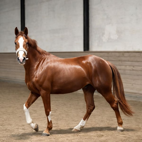 A colorful three-year-old dark chestnut mare by Selfmade out of Dancier x Londontime is for sale. She has three very good basic gaits. Currently, she is still in the herd on winter pasture/rearing stable, in her winter coat (for a better idea, see the AI-generated summer coat photo). The videos are from January 27, 2026. The mare is still completely green, has no experience with a bridle or riding equipment. She is accustomed to being tied up and loaded into a trailer. Handling-wise, she is typical for a horse of her age, showing no extreme or unusual behaviors. She has been healthy so far. X-rays or veterinary certificates are not available yet but can be arranged at the buyer’s expense if needed. Her dam, a Dancier x Londontime mare, is the brown mare shown in the pictures. She was raised directly by us, the breeder. In winter, she stays with the herd in an active stable with plenty of turnout, and in summer, she is on large 24-hour pasture. The horses are regularly trimmed by the farrier, dewormed, and mineral feed is provided as standard. We have had 5-10 foals each year and sell them because we cannot keep them all ;) These are the last generations, as we have ceased breeding. We are happy to arrange a viewing appointment, also via WhatsApp. Weekdays or weekends – both options are possible! Location: Rearing stable in Mainz-Bretzenheim, Im Tiefentaler Weg 1.