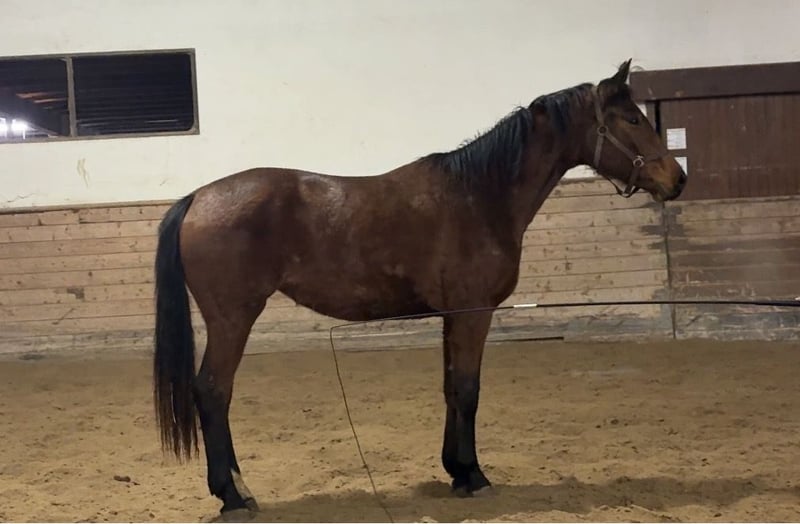 Verkauft wird eine großrahmige braune dreijährige Stute vonVitalos x Sarkozy x Rosario, mit drei sehr guten Grundgangarten. Im Moment noch in der Herde auf der Winterweide/ Aufzuchtstall. Noch im Winterfell Look (zur besseren Vorstellung mal per KI im Sommerfell). Videos sind vom 27.01.2026. Die Stute ist noch komplett grün, kennt keine Trense, nichts auf ihrem Rücken. Anbinden und in den Hänger verladen kennt sie. Im Umgang absolut im Normalbereich für ein Pferd in diesem Alter. Sie zeigt keine komischen extremen Verhaltensweisen. War bisher immer gesund. Röntgenbilder bzw. TÜV gibt es von ihr noch keine, das müsste bei Bedarf vom Käufer bezahlt werden. Direkt vom Züchter, selbst aufgezogen. Im Winter in der Herde im Aktivstall mit genügend Auslauf und im Sommer auf großen 24 Stunden Weiden. Die Pferde kommen regelmäßig zum Schmied, sind regelmäßig entwurmt und Mineralfutter ist auch selbstverständlich. Wir hatten jedes Jahr 5-10 Fohlen und verkaufen sie, weil wir nicht alle behalten können und vor zwei Jahren mit der Zucht aufgehört haben. Dies sind die letzten Jahrgänge auf der Suche nach einem schönen Zuhause. Gerne einen Termin zum Kennenlernen, auch per Whatsapp vereinbaren. Unter der Woche oder am Wochenende, beides passt gut! Standort ist der Aufzuchtstall in Mainz Bretzenheim, Im Tiefentaler Weg 1