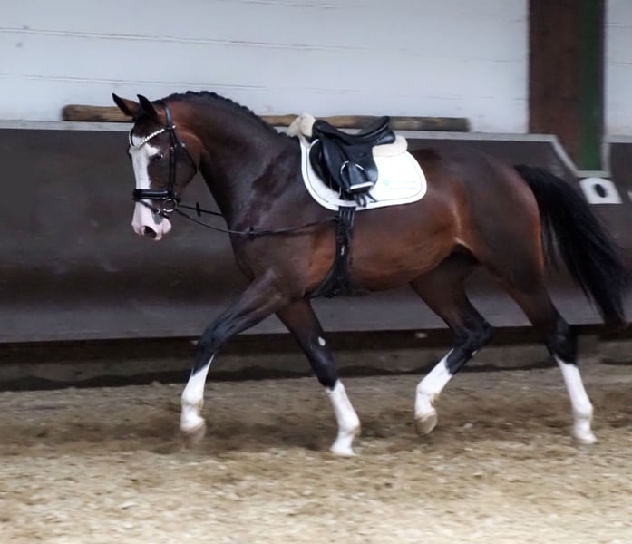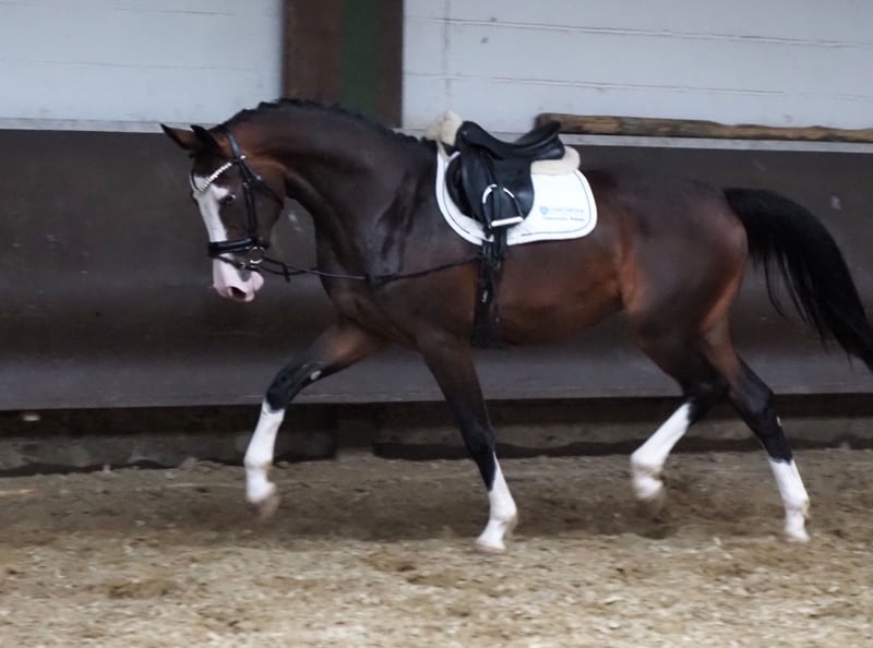 Beautiful colorful 2.5-year-old daughter of Cafe au lait, who is likely to become the perfect dual-purpose sport and leisure horse for everyone, based on her pedigree! Extremely interesting as a hunter, as many of her siblings have already become. With her striking appearance and white eyelashes, she is already an absolute eye-catcher! She has a pedigree that couldn't be better: Her dam by Accorado is already a mare producer and has brought forth numerous offspring that are successfully competing internationally up to S**** level! She is descended from our licensing champion, HLP winner, and BuCha finalist "Cafe au lait," who has been drawing attention for some time due to his incredibly successful offspring in dressage and show jumping. He is one of the few sires who can boast numerous successful offspring in both disciplines up to the advanced level! For example, "Cafe's Casimir" (Cafe au lait x Calido x Grannus) was the celebrated top price at the Oldenburg Elite Auction, and is already a series winner in M-level dressage at a young age, and at 7 years old, he is again a series winner in his first S-level dressage competitions! He is now successful in international Intermediaire I. The mare Kasselmanns Cafe's Caletta (Cafe au lait x Calato) is already successful in S*** dressage and internationally in Grand Prix. Cafe's Matts (Cafe au lait x Don Frederico) was the second most expensive dressage horse at the Oldenburg Summer Mixed Sales. Other young horses from jumping-oriented dams have already been placed multiple times in dressage tests from A to M and are remarkably strong movers with a clear mind. There is no question that the Cafe au lait offspring excel in show jumping up to the advanced level, such as from our breeding: Cafe's Champus: licensed, vice-world champion of young horses Cafe Junior: licensed, internationally successful in Saudi Arabia Cafe's Columbo: licensed and successful in sport in France Cafe's Don Rubin: licensed, at 4 years old the youngest horse to win bronze at the Dobrocker Deister Championship. Now at 5 years old, he has won multiple L-level show jumping competitions and is qualified for BuCha 2025! Cafe au lait himself was a Bundeschampionat finalist under Philipp Weishaupt and has been successful up to S*** in show jumping, but is also equipped with three spectacular gaits and has been trained to S level in dressage. Stationed at Paul Schockemöhle, he has already sired numerous internationally successful show jumpers, including "Royce" (Cafe au lait x Grandilot), who won the FEI CSI5* $500,000 Rolex Grand Prix Wellington. Our foals receive daily mineral feed and foal starter, regular EQUISTRO Haemolytan and Ipaligo Foal, deworming, and farrier services are, of course, a given. The broodmares also receive special mare feed, juice feed, linseed oil, and hay ad libitum throughout the entire pregnancy. Thus, our breeding mares and their offspring are always in the best health! Among the other listings, you will also find a part of our available Cafe au lait offspring. Each year, around 20 foals are born with us. A trade-in of a broodmare with a suitable pedigree is possible. Cafe's Acolina already has very good current X-rays. Until recently, she spent the summer in the pasture and is now slowly being prepared for backing. Video inquiries, etc., are only possible via WhatsApp in advance.