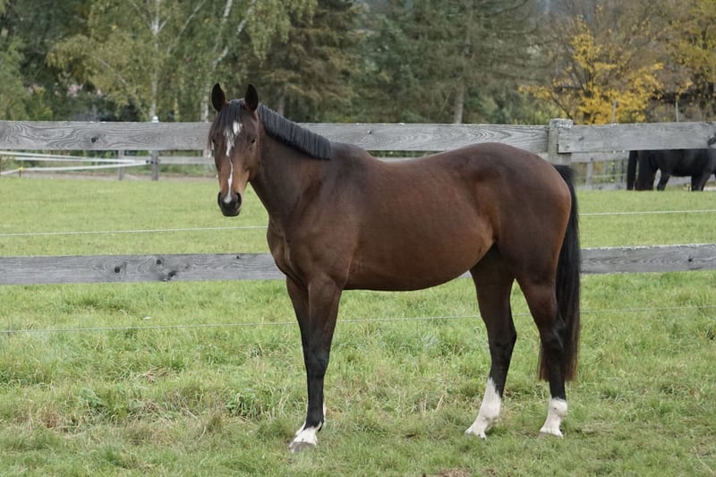 Limonchella es una yegua de 4 años, sensible y delicada, de la raza Oldenburger, criada en nuestra propia cuadra, con una altura actual de aproximadamente 1,58 m. Esta elegante yegua tiene una buena línea de sangre en salto (Rasso Royal x Balou du Rouet x Sandro Boy), presenta tres aires básicos sólidos y demuestra su calidad también en el salto libre. Creció de manera natural en una manada, con mucho espacio para correr, fue montada por primera vez en primavera y durante el verano volvió a pastar en el campo. (La yegua fue montada por última vez en primavera y, por lo tanto, no está preentrenada para la doma). En su manejo y durante la monta, la joven yegua se muestra curiosa, prudente, atenta, pero también muy sensible y algo miedosa. Por ello, necesita un jinete experimentado, sensible y paciente, que la apoye con constancia y empatía. Con las personas adecuadas, sin duda será un caballo maravilloso, aunque no es recomendable para principiantes. Sus hermanos, tanto por parte de madre como de padre, han tenido éxito hasta en S-Springen. Dado que no queremos hacer las cosas a medias y actualmente no disponemos del tiempo suficiente para entrenar a este caballo tan especial según su carácter, estamos dispuestos a cederla por un precio modesto a un jinete adecuado. Está sana, bien conformada y lista para quien tenga la ilusión de desarrollar un caballo sensible y talentoso. Ha sido vacunada regularmente, desparasitaday y ha sido revisada por el herrero. No dispone de un informe TÜV, pero puede realizarse a petición del comprador. Si está interesado o tiene alguna pregunta, no dude en llamarnos al 0171-4239087. La visita puede hacerse en cualquier momento, y los videos se pueden enviar por WhatsApp.