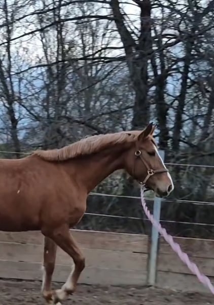 Zum Verkauf steht diese jetzt 4 jährige Stute von Quinaro / Quick Star aus einer Mutter von Cessna / Cordalme. Sie ist frisch von der Aufzucht zu uns gekommen und sucht zeitnah einen guten Platz. Da sie noch nicht viel kennt und wir ganz langsam mit ihrer Ausbildung beginnen, wird sie weit unter Wert verkauft. Ca. 1,60m groß.