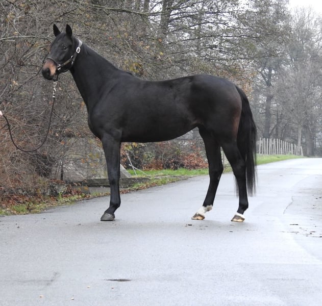 ❗️En raison de la charge de travail importante, nous demandons uniquement des demandes par téléphone.❗️ À vendre, une jument de 3 ans avec une taille au garrot d'environ 1,62 m. La jument provient directement du breeder et évoluait jusqu’à récemment dans un petit troupeau de juments. Elle connaît néanmoins le contact quotidien. Elle se laisse mener et est sage avec ses sabots. Nous décririons son caractère comme très doux et confiant. Même dans de nouveaux environnements, elle ne devient jamais paniquée et reste toujours manipulable. Sans contact téléphonique préalable, nous n’enverrons pas de vidéos de nos chevaux, merci de ne pas faire de demandes « envoyez-moi une vidéo ». Les visites sont possibles à tout moment. Pour toute question supplémentaire, n’hésitez pas à nous contacter par téléphone au 0171 530 33 40. Tous les droits sur les images appartiennent à Sport- und Freizeitpferde Wilfried Oestersandforth. Toute diffusion ou publication est strictement interdite.