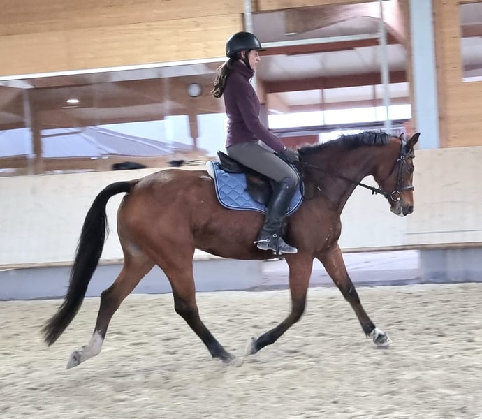 Wir verkaufen unsere zuckersüsse Oldenburger Stute von Conthalou. Sie wurde dreijährig angeritten und hatte dieses Jahr ein sehr schönes Fohlen von unserem Hengst Canoche de Ronda/Chaclfy / Quintender. Sie ist jetzt 4 und im April 2026 5 Jahre alt. ca 165cm Stockmass Sie ist super lieb im Umgang und beim Reiten brav aber keine Schlaftablette. Sehr schön zu reiten. Macht auch schon einen kleinen Sprung. Eine super tolle Stute für jemanden mit Gefühl für ein junges Pferd und der für die Zukunft eine tolle Pferdepartnerin sucht. Da Sie ja einen Job als Mama hatte reiten wir sie seit 4 Monaten wieder und sich macht einen richtig guten Job und ist eine wahre Freude. Lebt im Aktivstall. Bei mir seit Fohlen. Doppelveranlagt für Springen. Dressur, VS, Freizeit. Bestes Leistungsblut auch mütterlicherseits. Ihre Tante mütterlicherseits Noche De Ronda hat den grossen Preis von Aachen mit McLain Ward gewonnen. Ihre Schwester Rocca R.T OLD ist in USA international erfolgreich und war 6. im Finale der 6jährigen Pferde beim Bundeschampionat. Wegen Bestandsverkleinerung zu verkaufen in gute Hände. Platz vor Preis. Barhuf. Standort 20min von Karlsruhe. Tel 017620430533