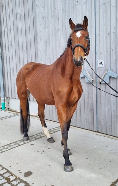 We are offering our very sweet Oldenburg mare by Conthalou for sale. She was lightly backed as a three-year-old and had a beautiful foal this year by our stallion Canoche de Ronda (Chacfly / Quintender). She is now 4 years old and will be 5yrs in April 2026. Approx. 165 cm height. She is extremely kind in all handling and very well-behaved under saddle, but not a “sleeping pill.” A lovely ride with good balance and willingness. She has already jumped a few small jumps. A wonderful mare for someone with sensitivity for a young horse who is looking for a great partner for the future. As she had a job as a mum, we restarted her again under saddle four months ago, and she is doing a really good job — truly a pleasure to work with and ride. She lives in an active stable in a 20horse group. I have owned her since she was a foal. Double-talented for show jumping. Suitable also for dressage, eventing, and leisure riding. Top performance bloodlines on the dam’s side as well. Her maternal aunt, Noche de Ronda, won the Grand Prix of Aachen with McLain Ward. Her sister, Rocca R.T OLD, is internationally successful in the USA and placed 6th in the final of the 6-year-old horses at the Bundeschampionat. For sale due to downsizing. Only to the best home. Home more important than price. Barefoot. Located 20 minutes from Karlsruhe. Phone: 0176 20430533