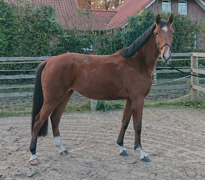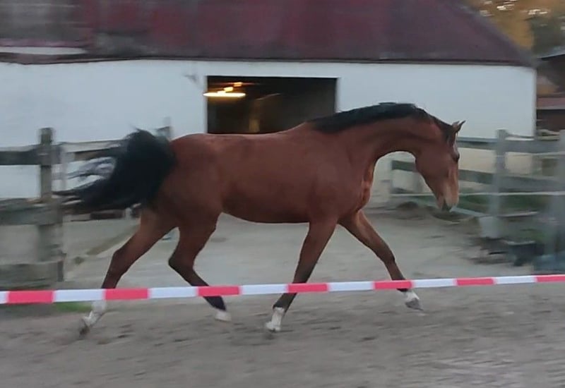 Piękna klacz jak z obrazka! Tu wszystko do siebie pasuje: ta urocza, efektownie zbudowana klacz ma dobrą, pełną energii i rytmiczną ruchliwość z dużym taktowaniem. Jej wygląd zewnętrzny i charakter nie pozostawiają nic do życzenia. Potomstwo z tej linii klaczy odnosi sukcesy zarówno w młodzieżowym i amatorskim sporcie, jak i w wyższych klasach. Dostępne zdjęcia rentgenowskie z 2024 roku, bez żadnych uchybień. Tylko przez krótki czas w tej cenie! Ponieważ klacz w najbliższym czasie rozpocznie szkolenie, zastrzegam sobie możliwość podniesienia ceny w miarę postępu nauki. Na życzenie, po zakupie i jeśli podoba się Państwu nasza filozofia, klacz może pozostać u nas do dalszej hodowli i szkolenia, w zamian za pokrycie kosztów karmienia i pracy.
