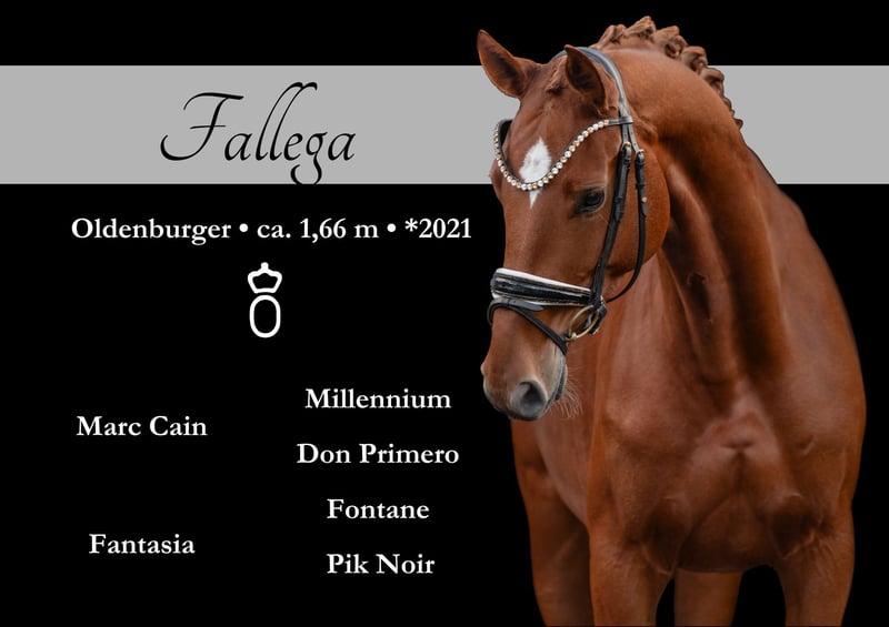 Dear Interested Parties, To arrange a trial ride, please send me a WhatsApp message. For further questions, I am available during the day via WhatsApp, and you can reach me best by phone between 4 pm and 7 pm. I look forward to hearing from you. www.angelina-devittorio.de ⭐️Fallega⭐️ Age: 4.5 years (2021) Height: approximately 16.1 hh Pedigree: Marc Cain x Fontane Training level: Placed in young horse classes, DrPf A completed X-rays: Good radiographs available For sale is a nearly 5-year-old, stunning daughter of Marc Cain with three excellent basic gaits. Her outstanding trot mechanics, characterized by plenty of impulsion and expression, her steady, overstep-filled walk, and her very good canter are particularly noteworthy. She is an extremely pleasant, uncomplicated horse, very sweet in handling and always people-oriented. She is at a secure level for dressage horse class A and has already been placed in young horse tests. An ideal, intelligent young horse with top quality and excellent prospects for higher-level dressage. Absolutely suitable for amateurs, suitable for any rider with solid A-level experience. She has good X-ray results and no prior health issues. A super elegant mare with the best potential, excellent basic gaits, and great future prospects. ⚜️Phone: 0171-3438949 ⚜️a.devittorio@web.de ⚜️https://www.ehorses.de/angelinadevittorio Facebook and Instagram: Angelina De Vittorio