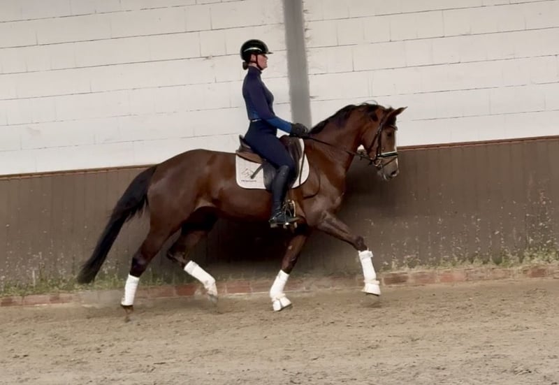 Liebe Kaufinteressenten, Für Fragen oder Terminvereinbarungen senden Sie uns bitte eine WhatsApp oder E-Mail. Telefonisch erreichen Sie uns WERKTAGS und am besten gegen Mittag. Sollte dem nicht so sein, bitte einfach eine Nachricht schreiben und wir melden uns zurück. Wir freuen uns auf Ihre Kontaktaufnahme! „Bella“ ist eine charmante junge Dame, die mit ihrer schönen Qualität und unkomplizierten Art sehr ansprechend ist und jeden Tag Freude bereitet. Im Umgang und bei der Arbeit ist sie immer freundlich, motiviert und möchte sehr gerne gefallen. Unter dem Sattel zeigt sie sich bereits sehr ausbalanciert, sitzbequem und mit einer schönen, leichten Anlehnung. Ein ganz tolles Pferd, um sich gemeinsam etwas sehr schönes für die Zukunft aufzubauen. Direkt vom Züchter. Guter TÜV vorhanden.